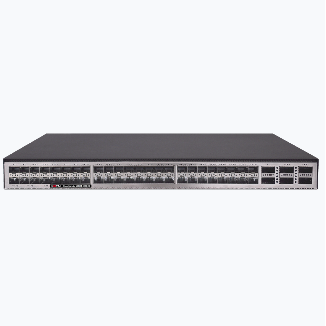 CloudMatrix 6663H-48S6CQ 交换机提供48个25GE SFP28接口,6个100GE QSFP28接口,或6个40GE QSFP+接口。