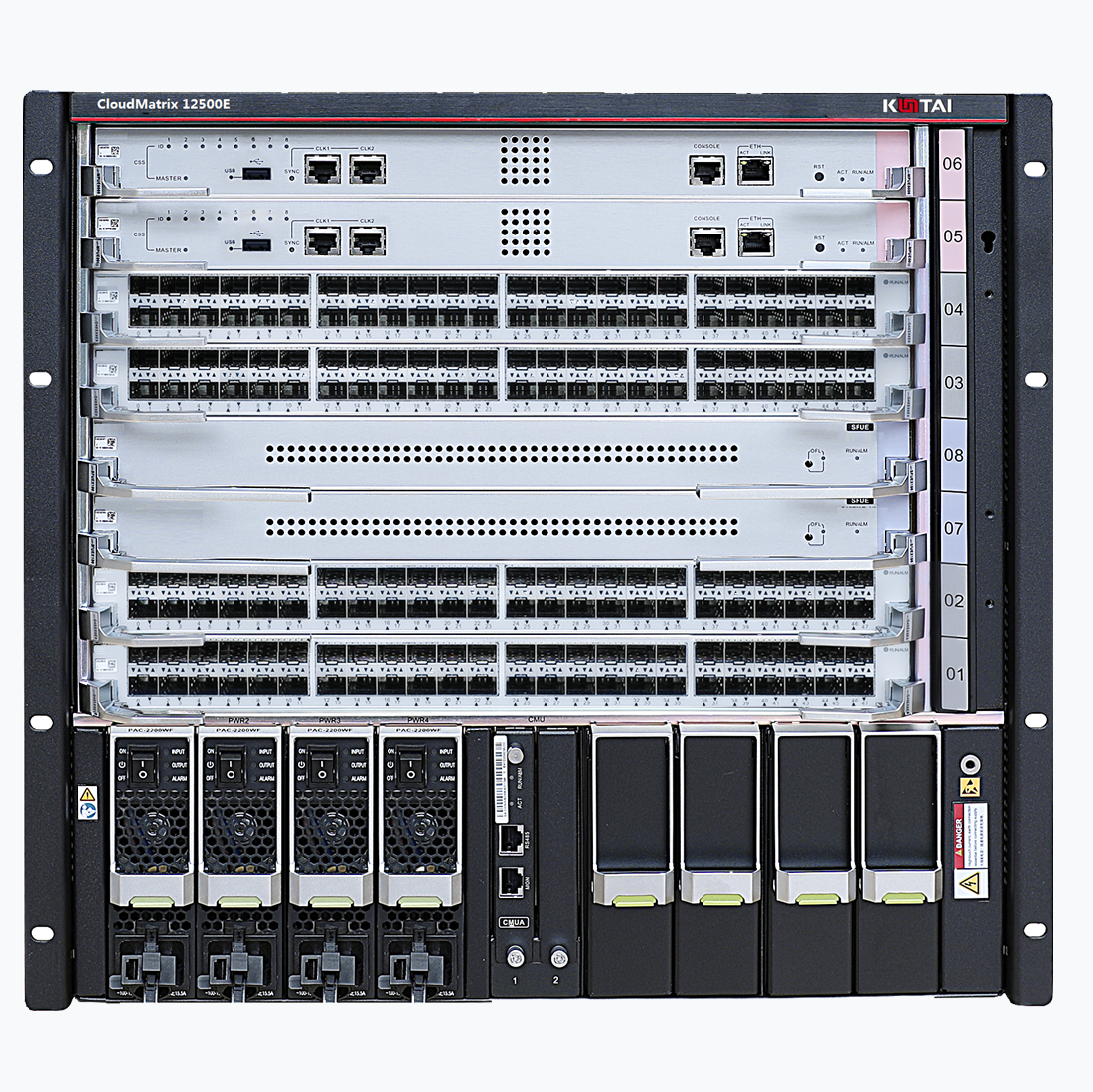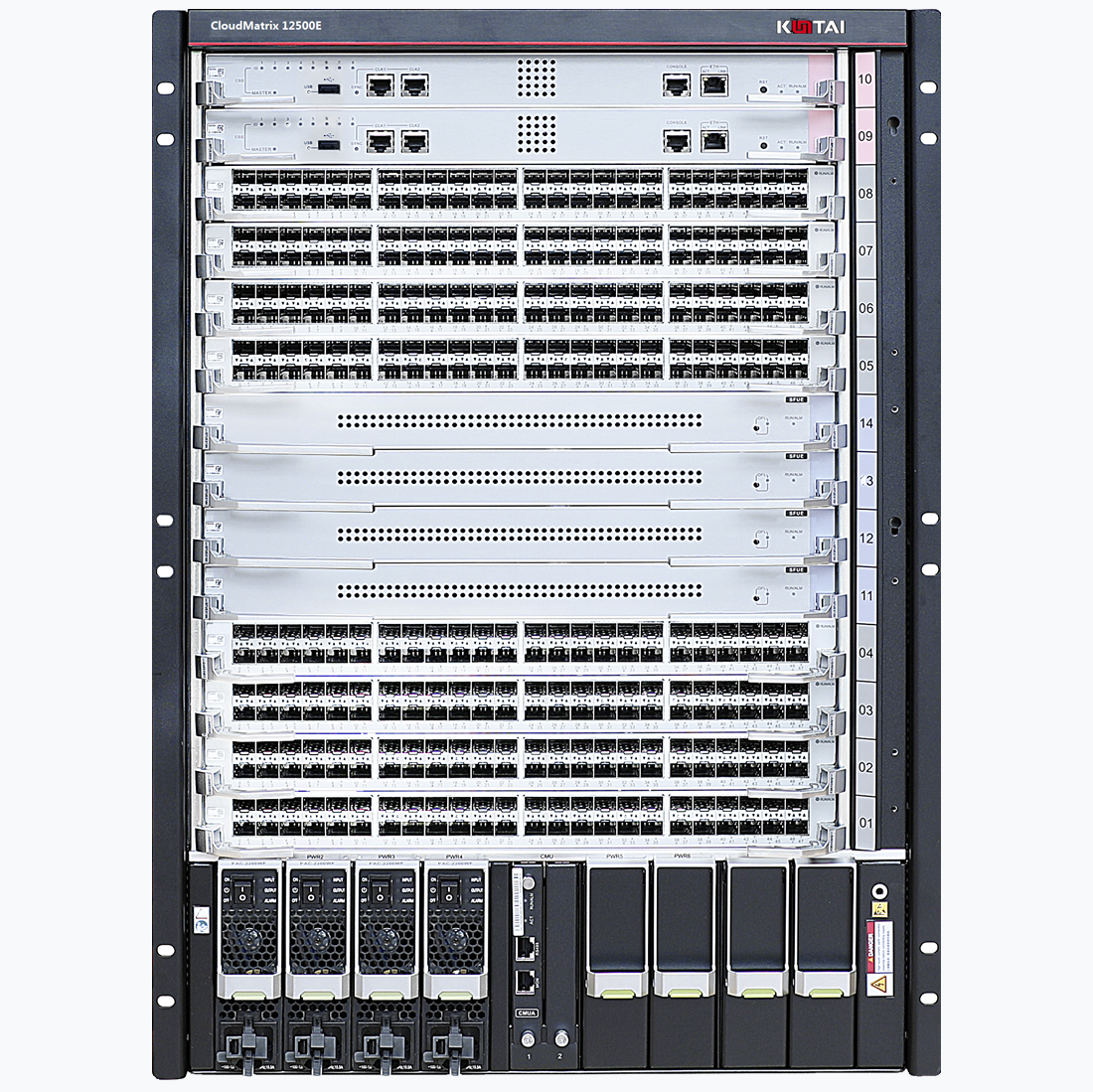 CloudMatrix 12500E 系列智能路由交换机(简称CM12500E)是面向 Wi-Fi 6 全无线时代高端园区网络推出的全新一代旗舰级核心交换机,整机最大可提供 288*100GE/40GE 或 480*25GE 或 576*10GE/GE 端口,同时配套 CloudMatrix6530 及 CloudMatrix5530 系列交换机,可满足不同网络规模或应用场景的建网需求。